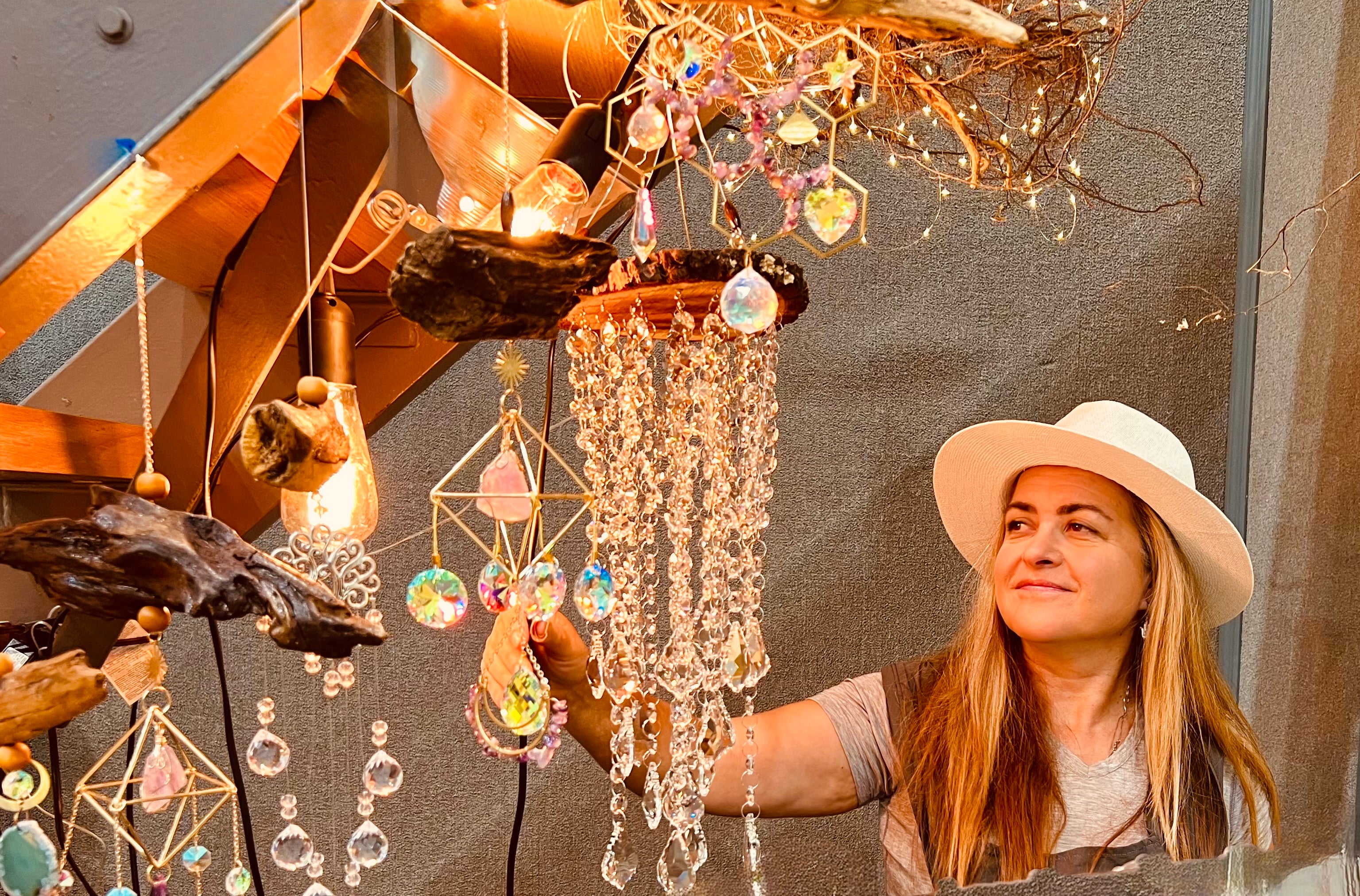 Handcrafted driftwood art, sun catchers, and luminous creations
